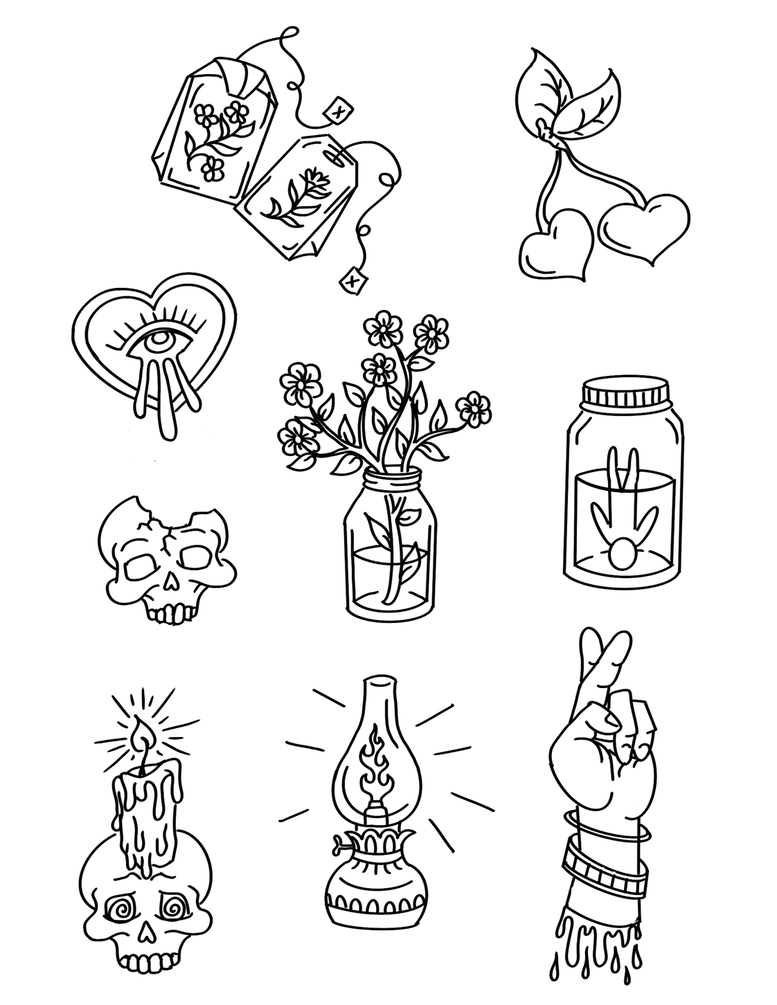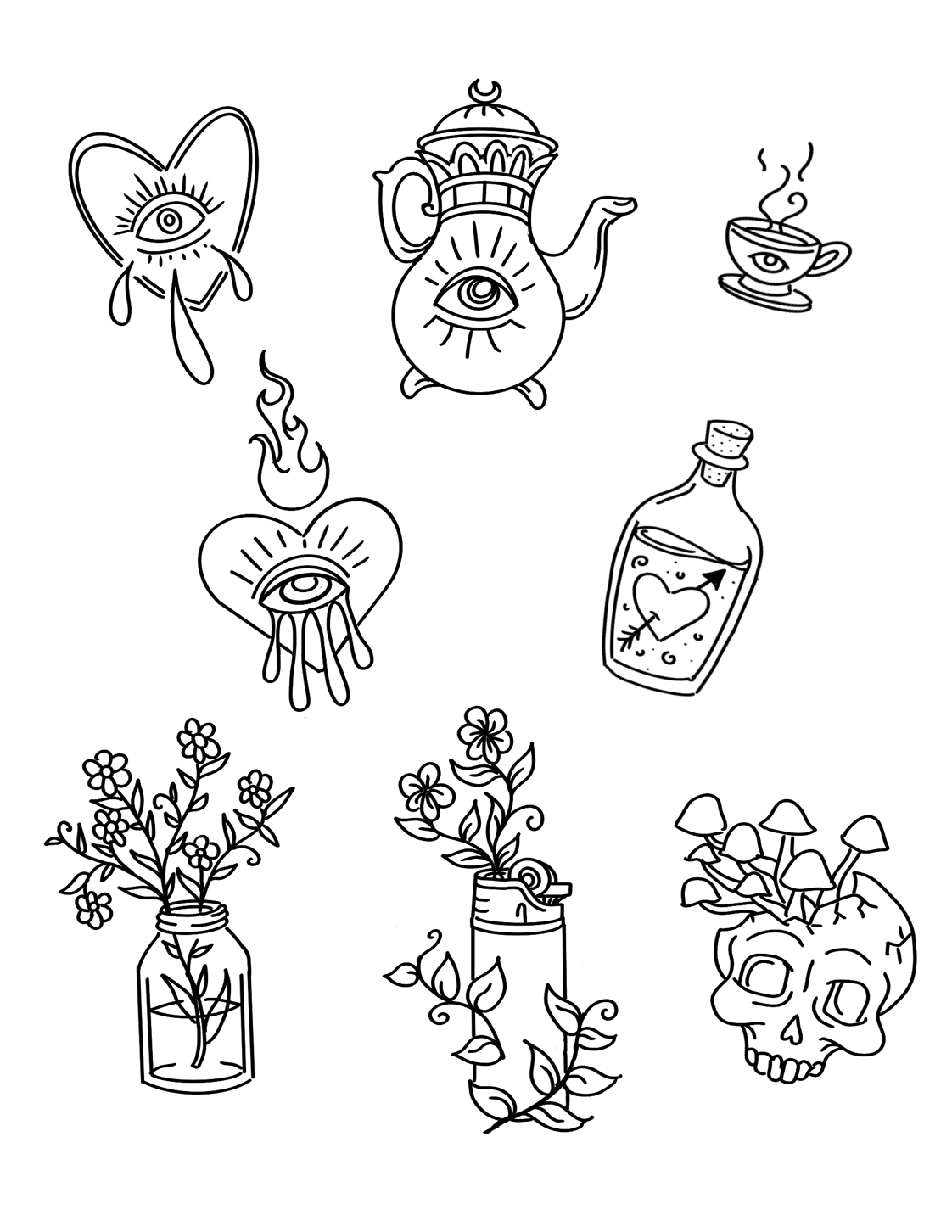 Jessie has an extensive portfolio. She has also created her own custom flash designs to be chosen from. During this period of her apprenticeship she is only tattooing her own custom flash designs. Book a session below for discounted rates for JESSIE’S APPRENTICE FLASH DESIGNS!